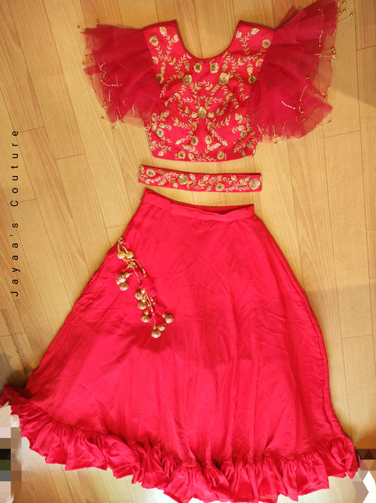 Tomato red lehenga set with belt