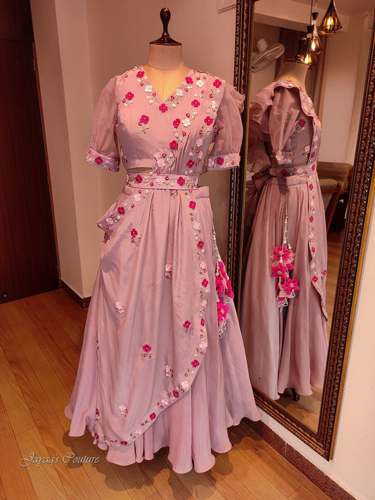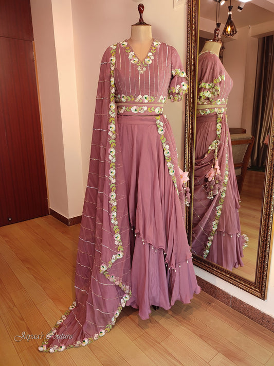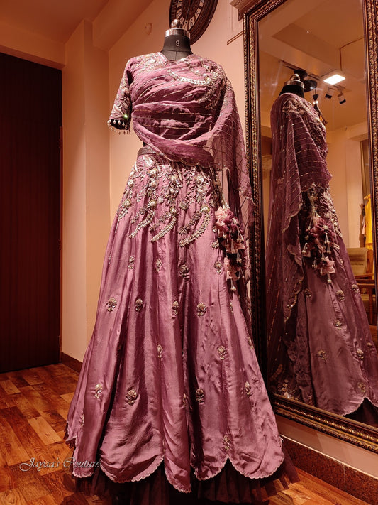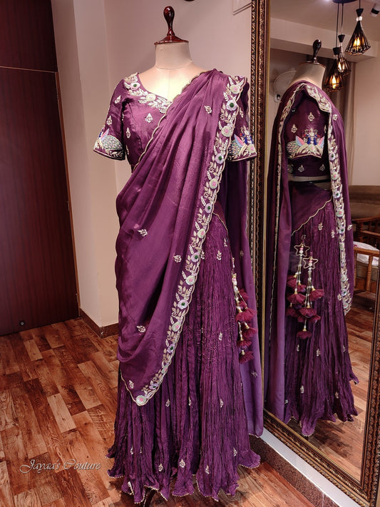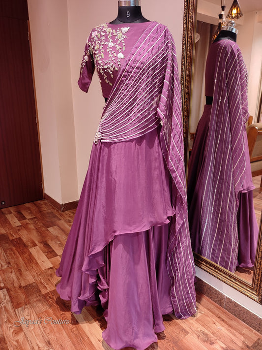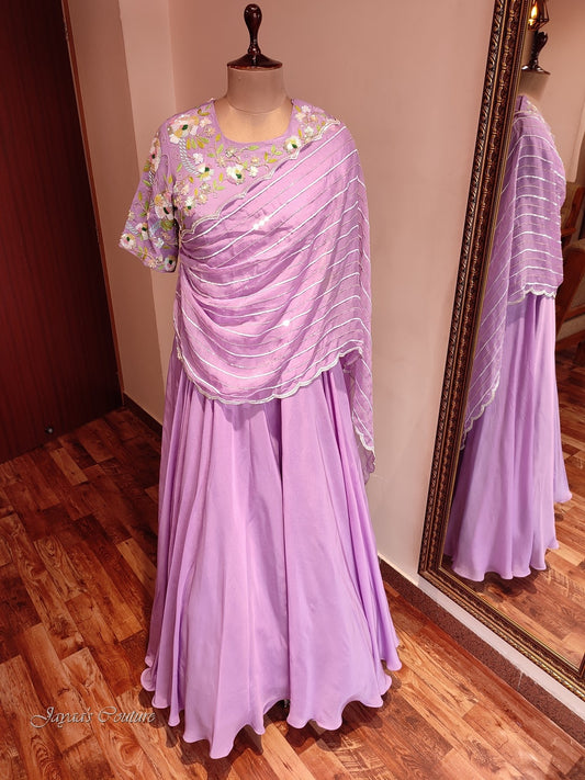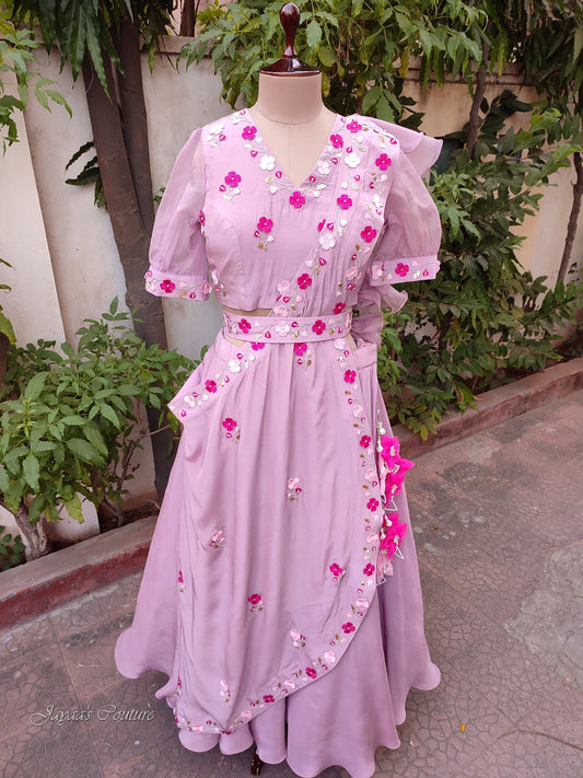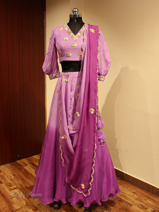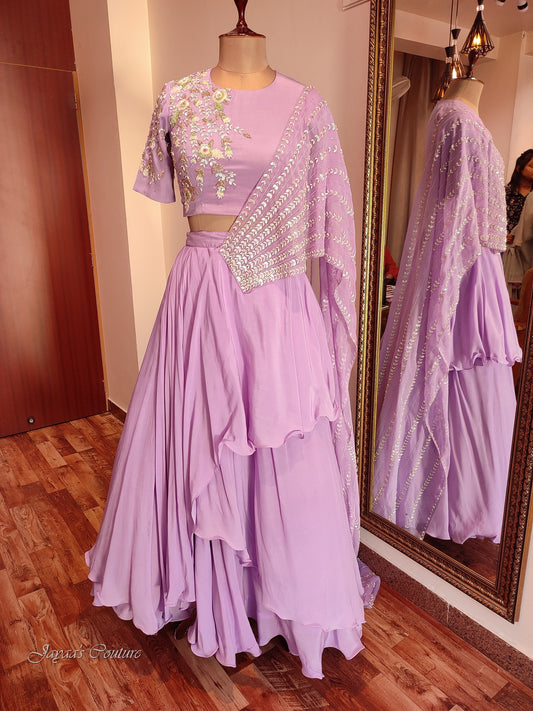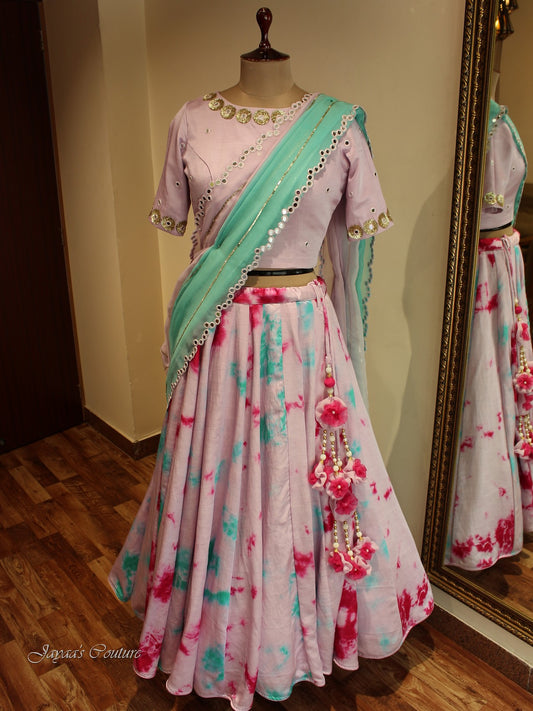 Lavender tie & dye lehenga with blouse & draped dupatta