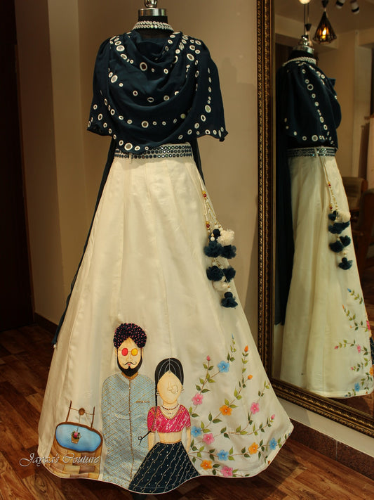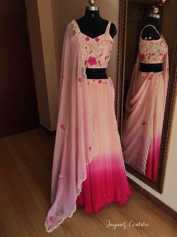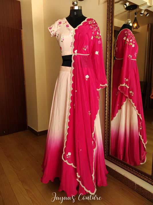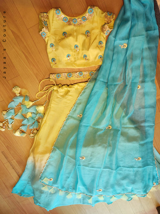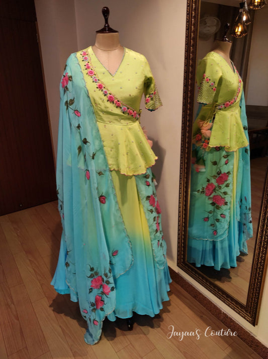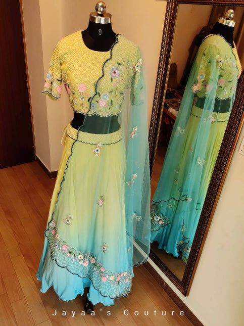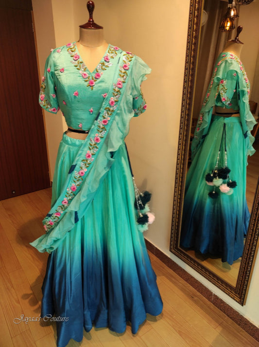 Greenish Blue Ombre Lehenga & Drape Dupatta