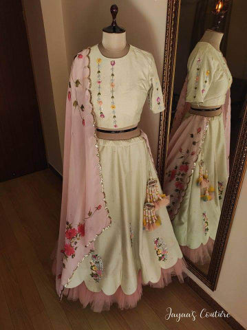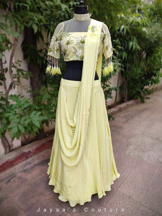 Mustard Yellow gotta patti Lehenga with organza Dupatta