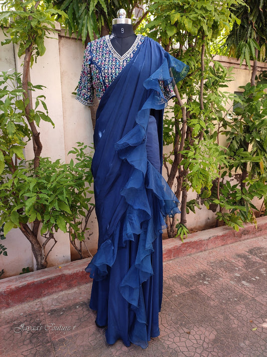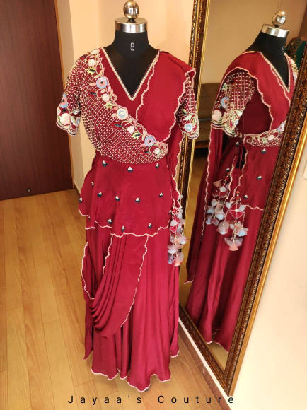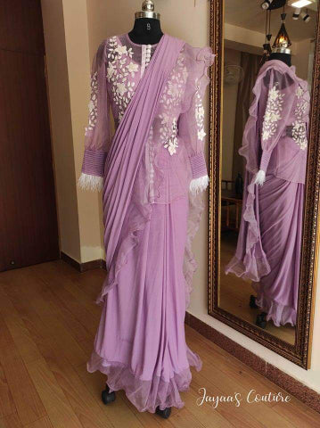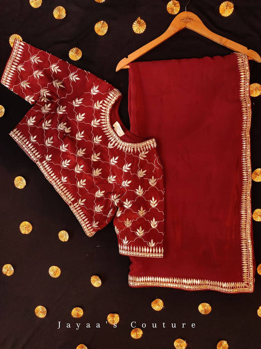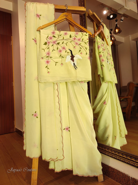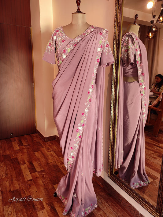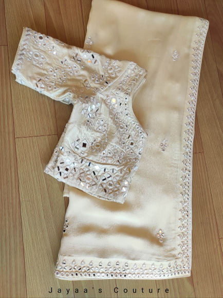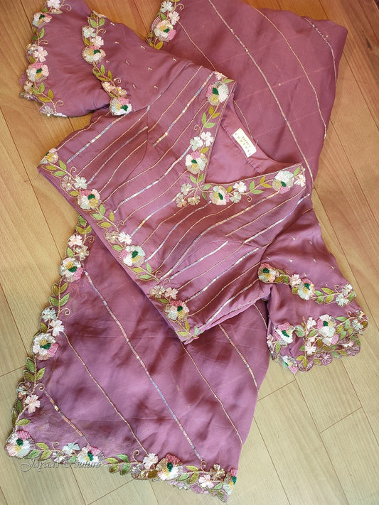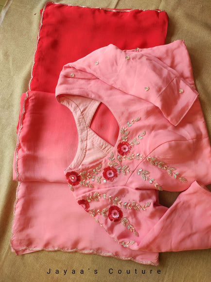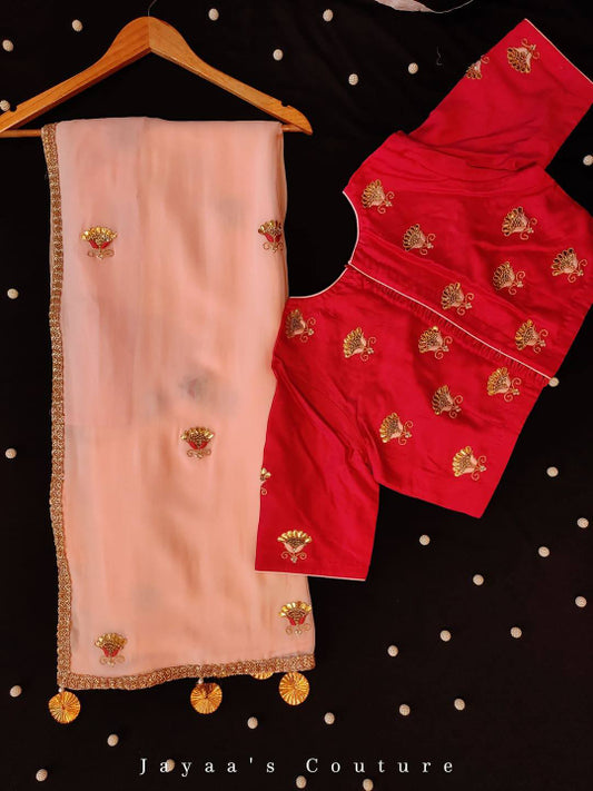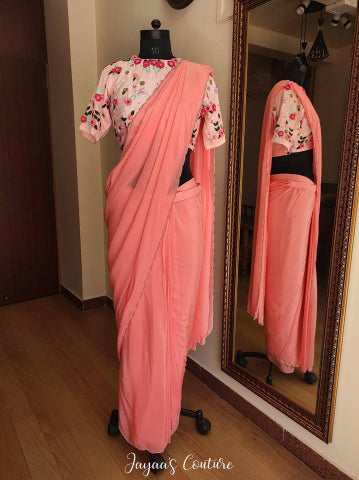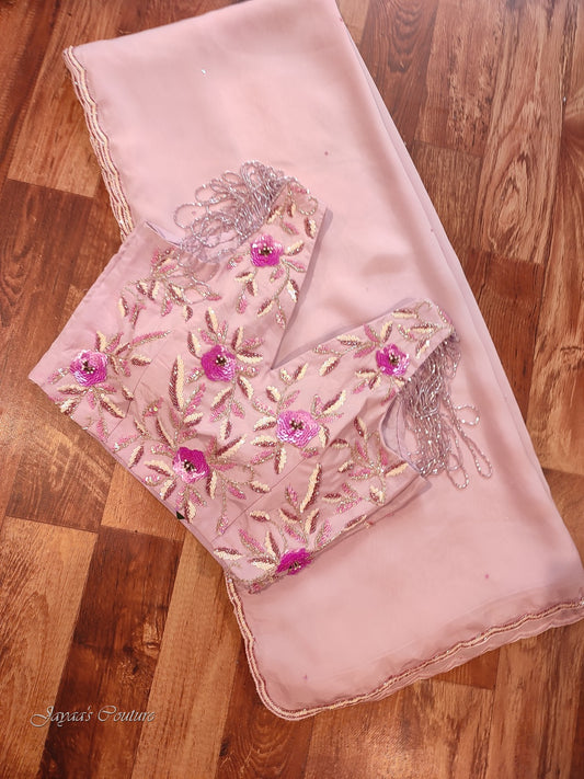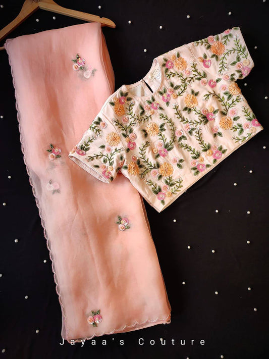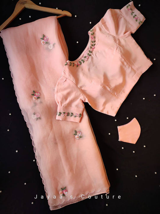 PEACH ORGANZA SAREE & CREPE BLOUSE ADORNED WITH HAND WORK