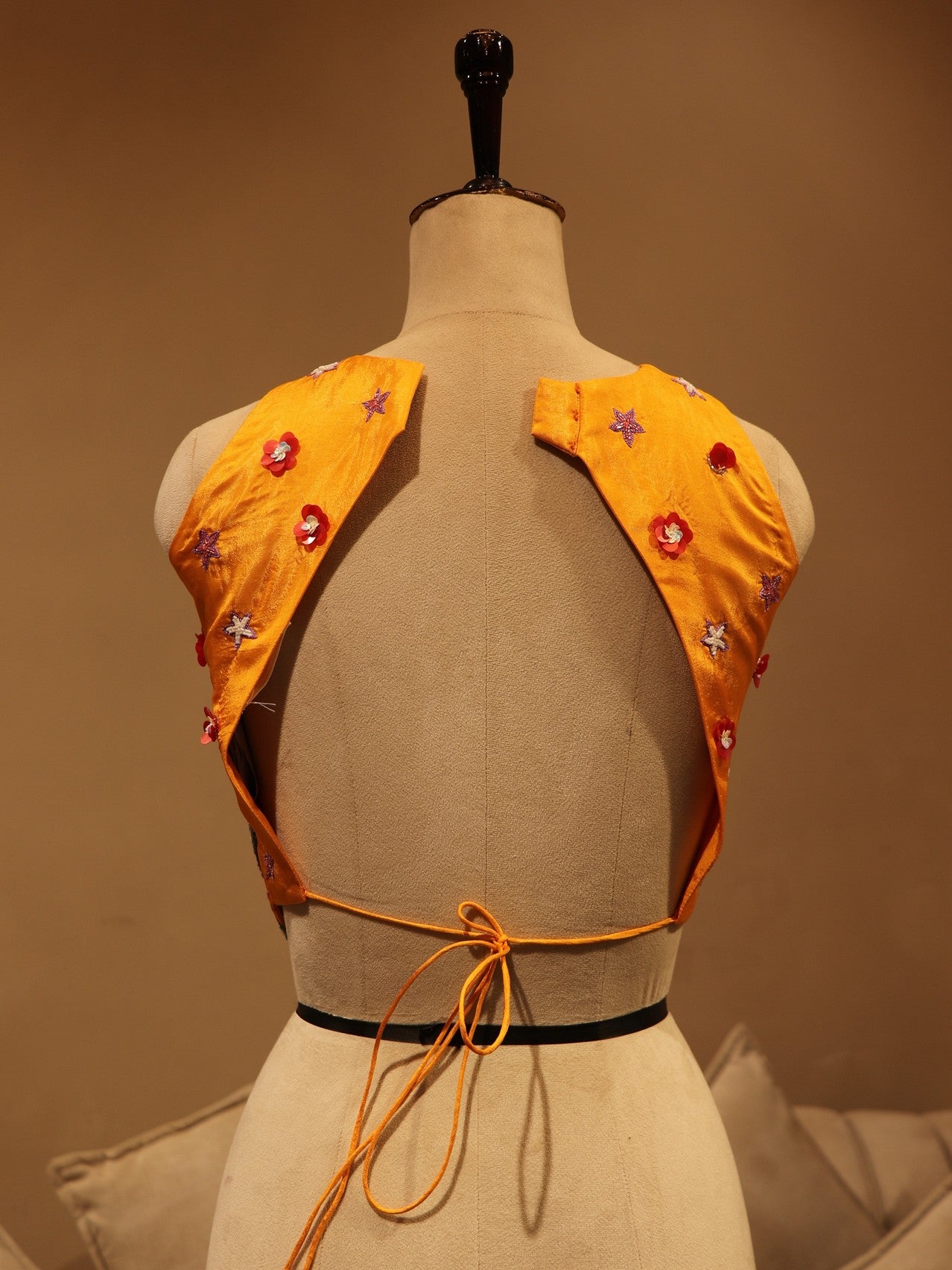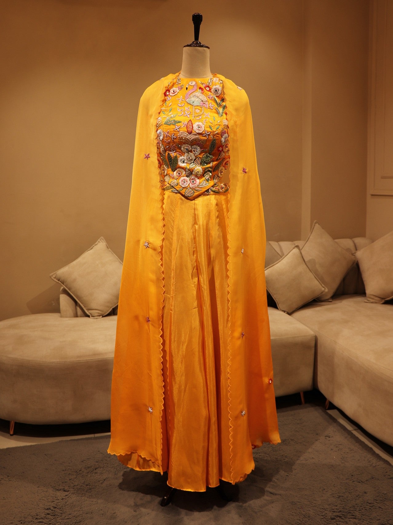 Orange shaded crane crop top skirt cape