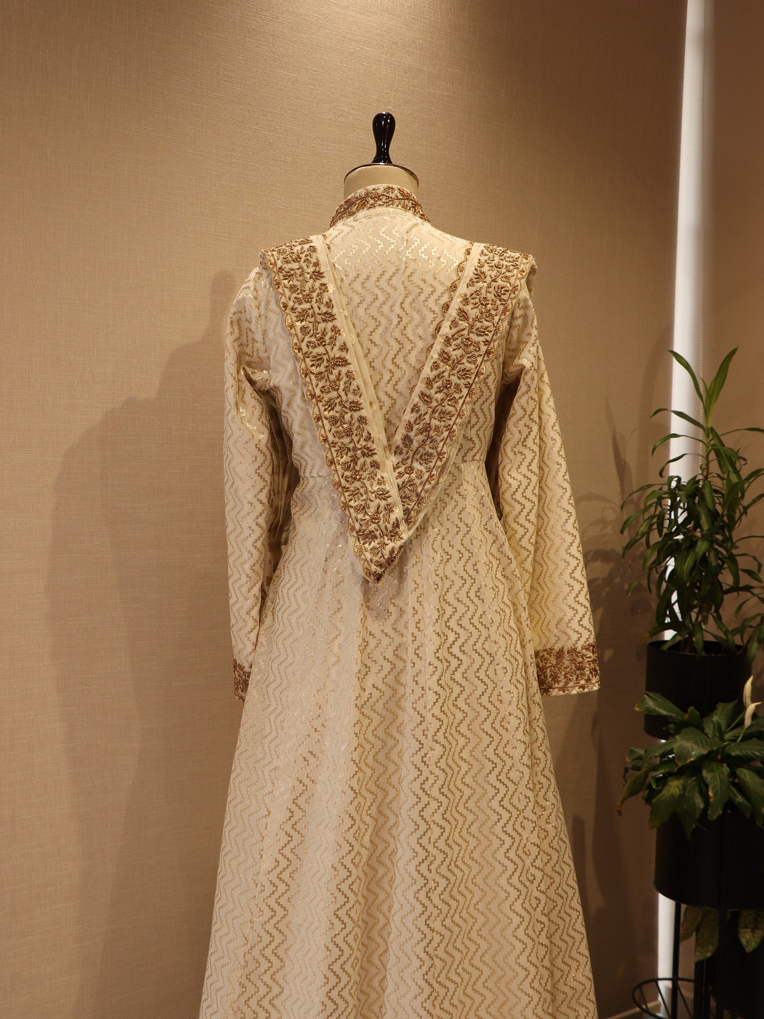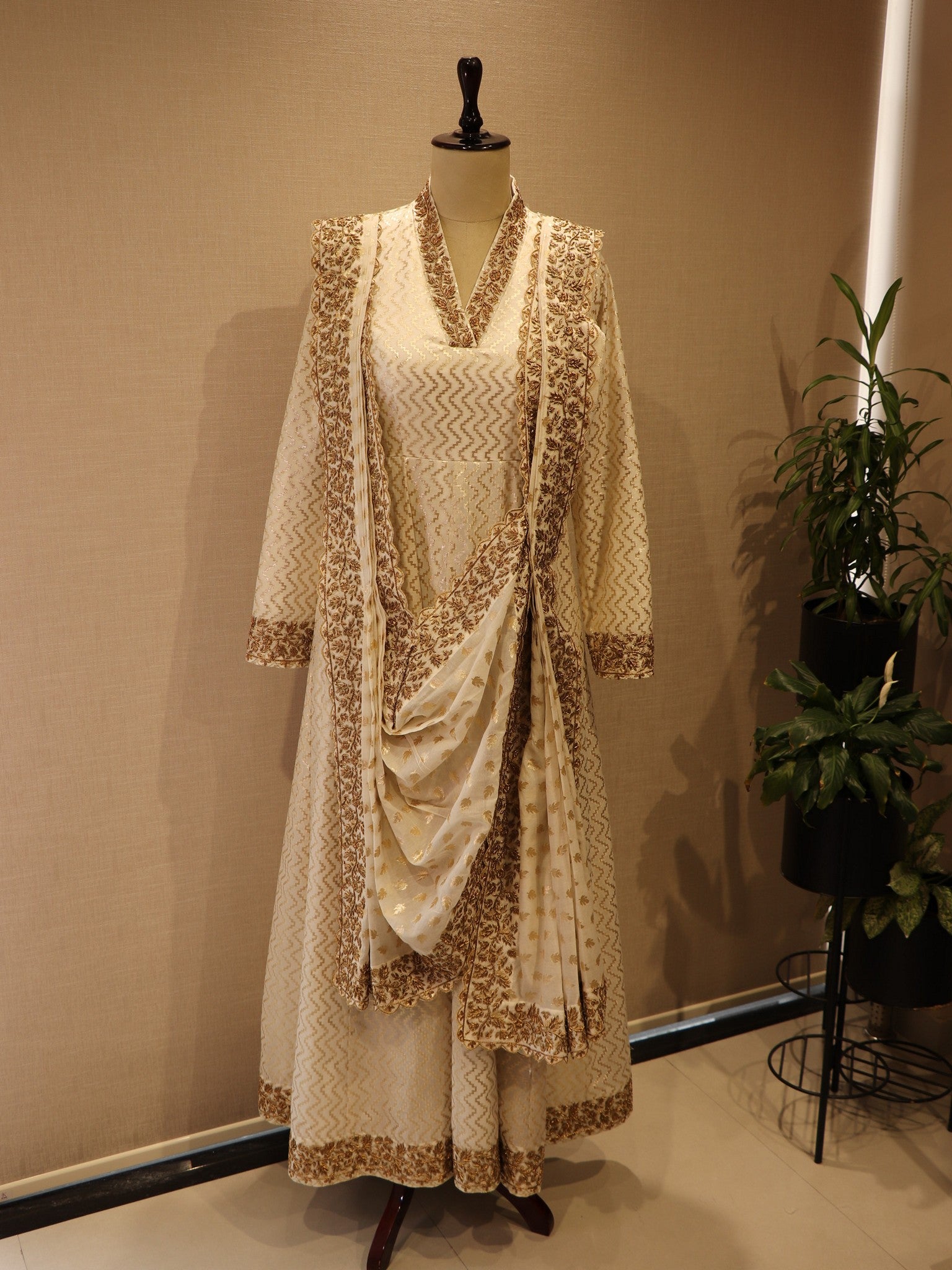 Off white Chanderi gown with drape dupatta