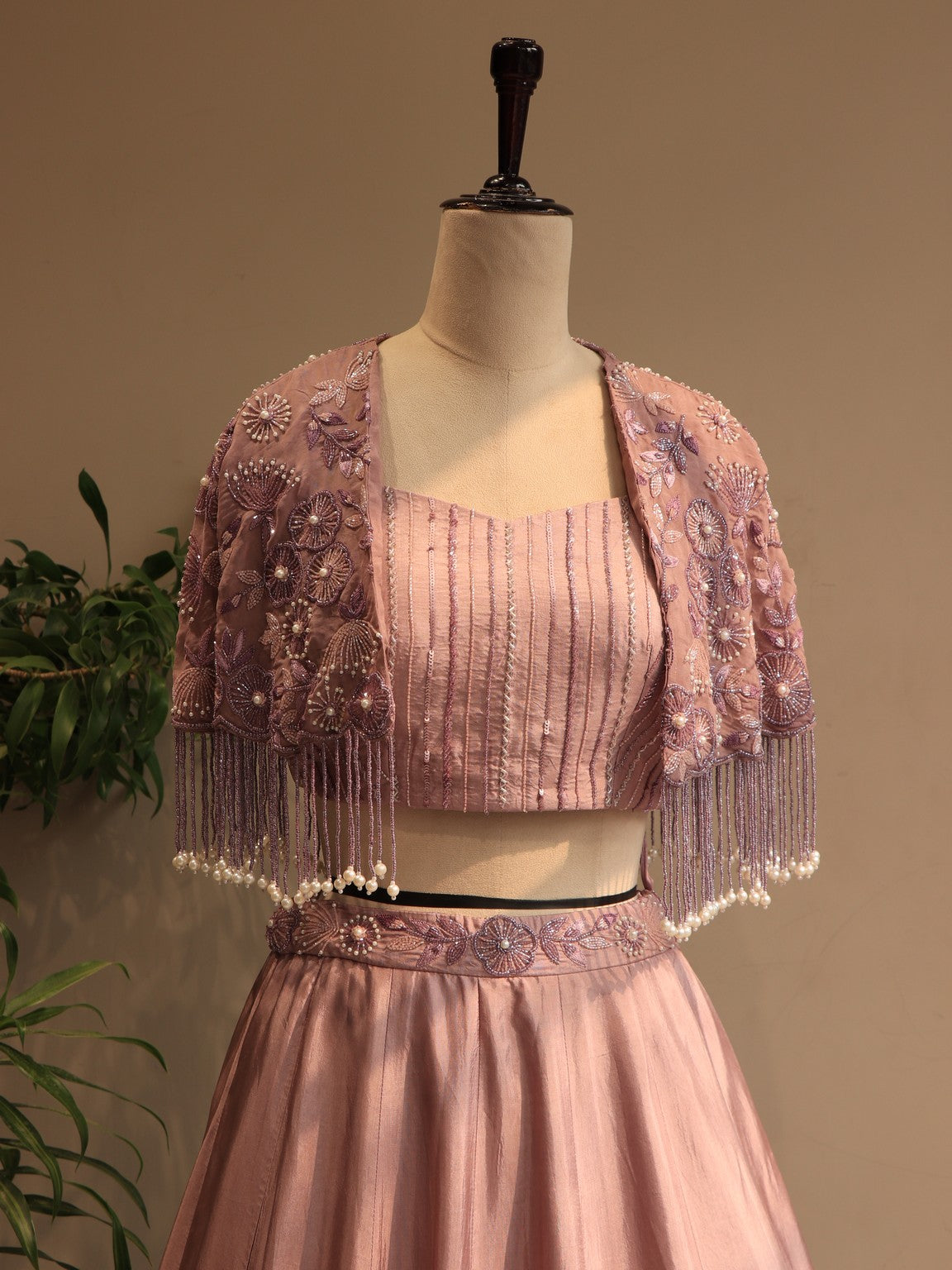Mauve shaded embroidered cape top with skirt