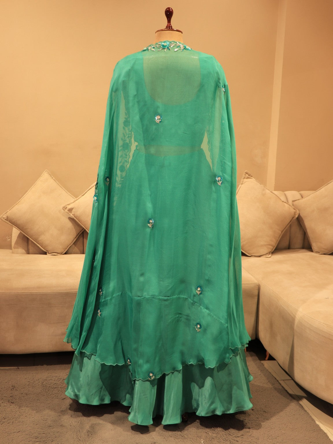 sea green crop top skirt cape