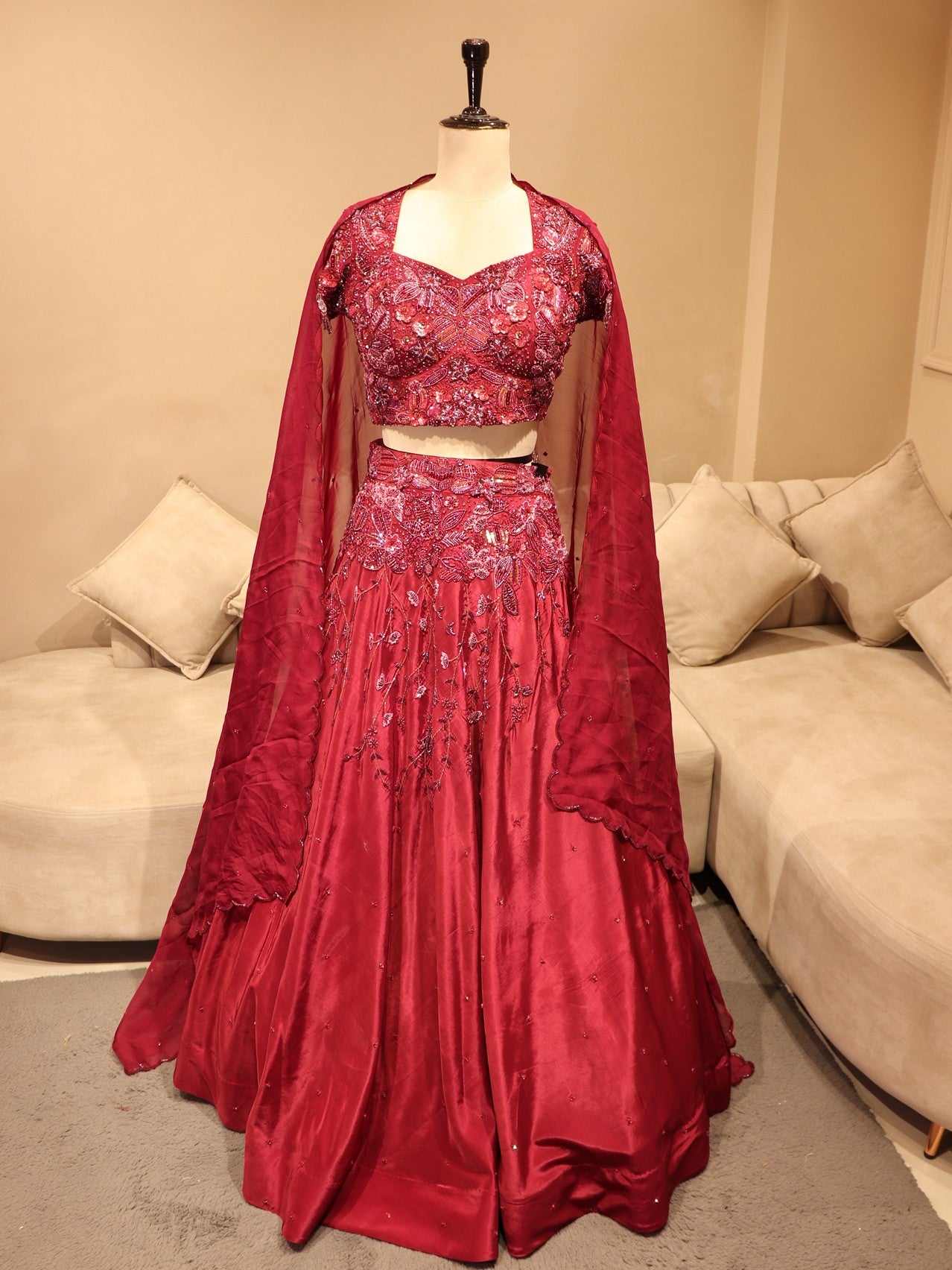 Deep maroon 3D embroidered lehenga set